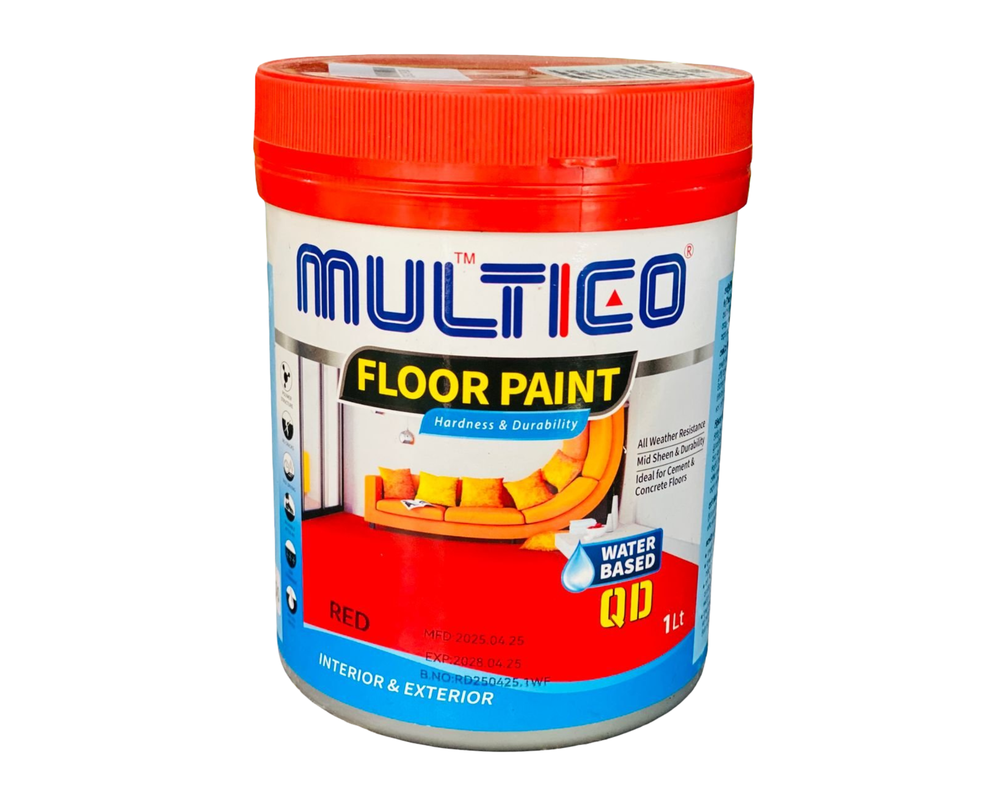 WATER BASED FLOOR PAINT BRIGHT RED 1L